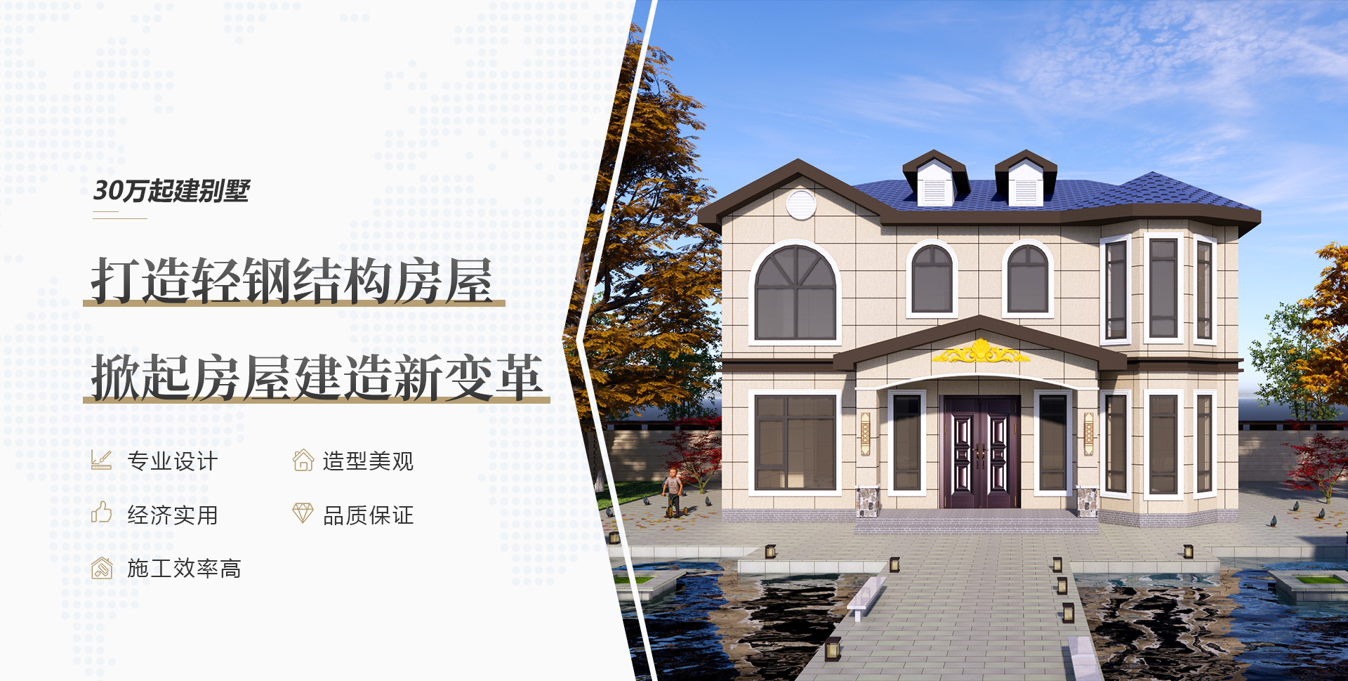 Introduction and advantages. 產品介紹與優勢 輕鋼別墅又被稱為輕鋼結構房屋,其主要材料是由熱鍍鋅鋼帶經冷軋技術合成的輕鋼龍骨,經過計算加上輔件的支持與結合,起到合理的承載力,以取代傳統房屋。 輕鋼別墅是以輕鋼為主體結構的房屋,輕鋼低層住宅建造技術,是在北美“木結構建造技術”的基礎上演變而來的,經過百年以上的發展,已形成了物理性能優異、空間和形體... more >>